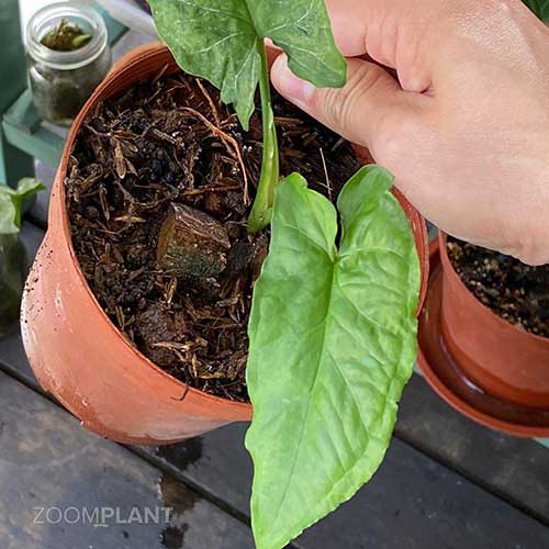 زمانی که ریشه ها از کف گلدان بیرون زدند با یک سایز بزرگتر تعویض شود.